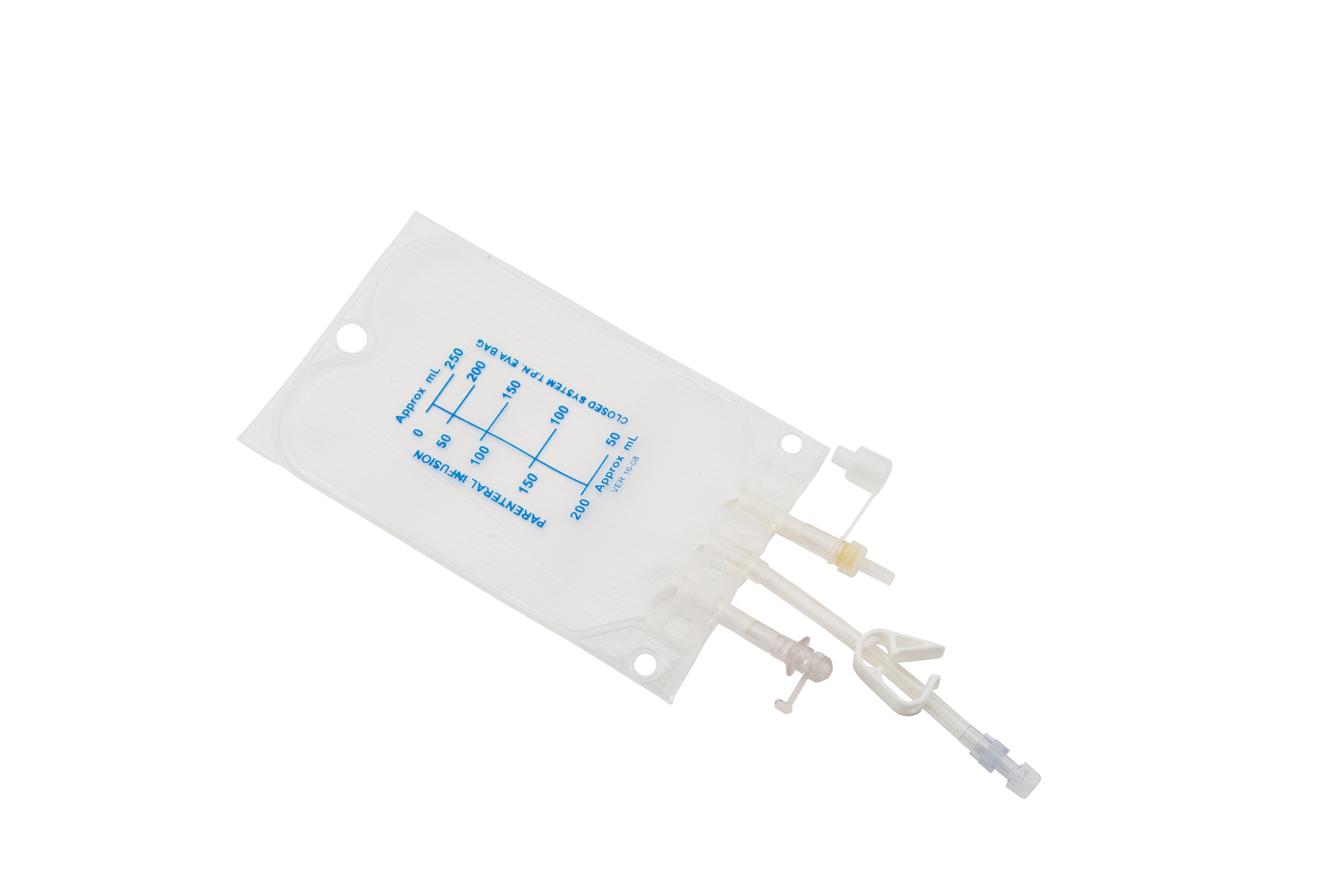 Ethylene vinyl acetate bags designed for separate storage of lipid emulsion or other special solutions. UV protected or unprotected options are available. Available in different volumes from 1,000 mL to 5,000 mL. Bag clamps are designed as openable or non-openable on demand.